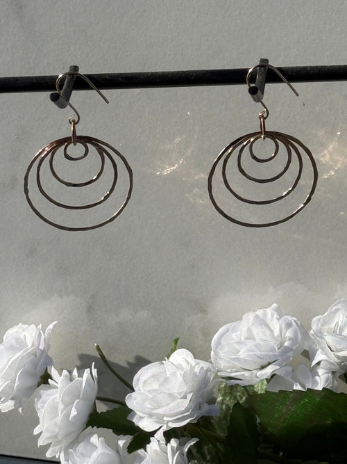 Sterling Silver Posts with Three Hammered Hoops -